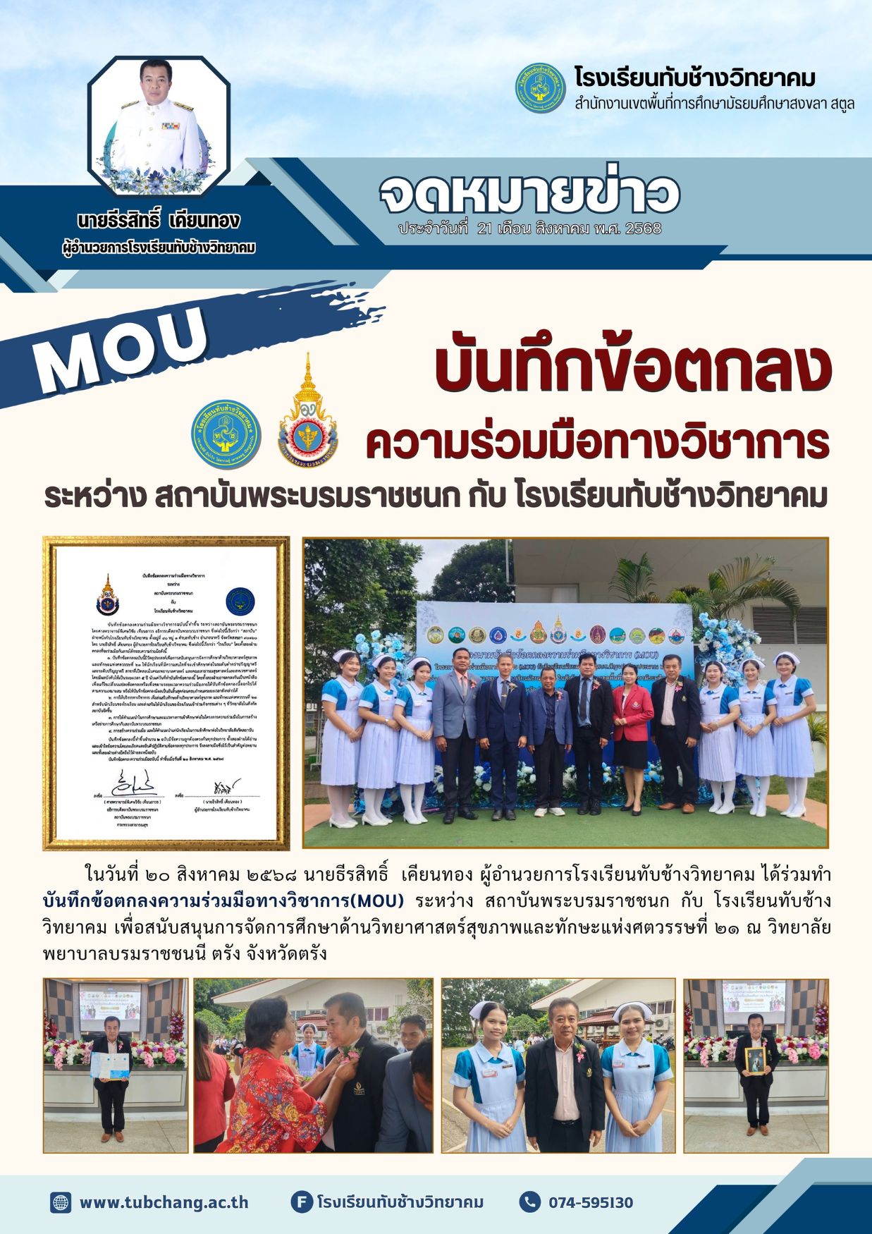 กิจกรรมบันทึกข้อตกลงความร่วมมือทางวิชาการ ระหว่าง สถาบันพระบรมราชชนก กับ โรงเรียนทับช้างวิทยาคม