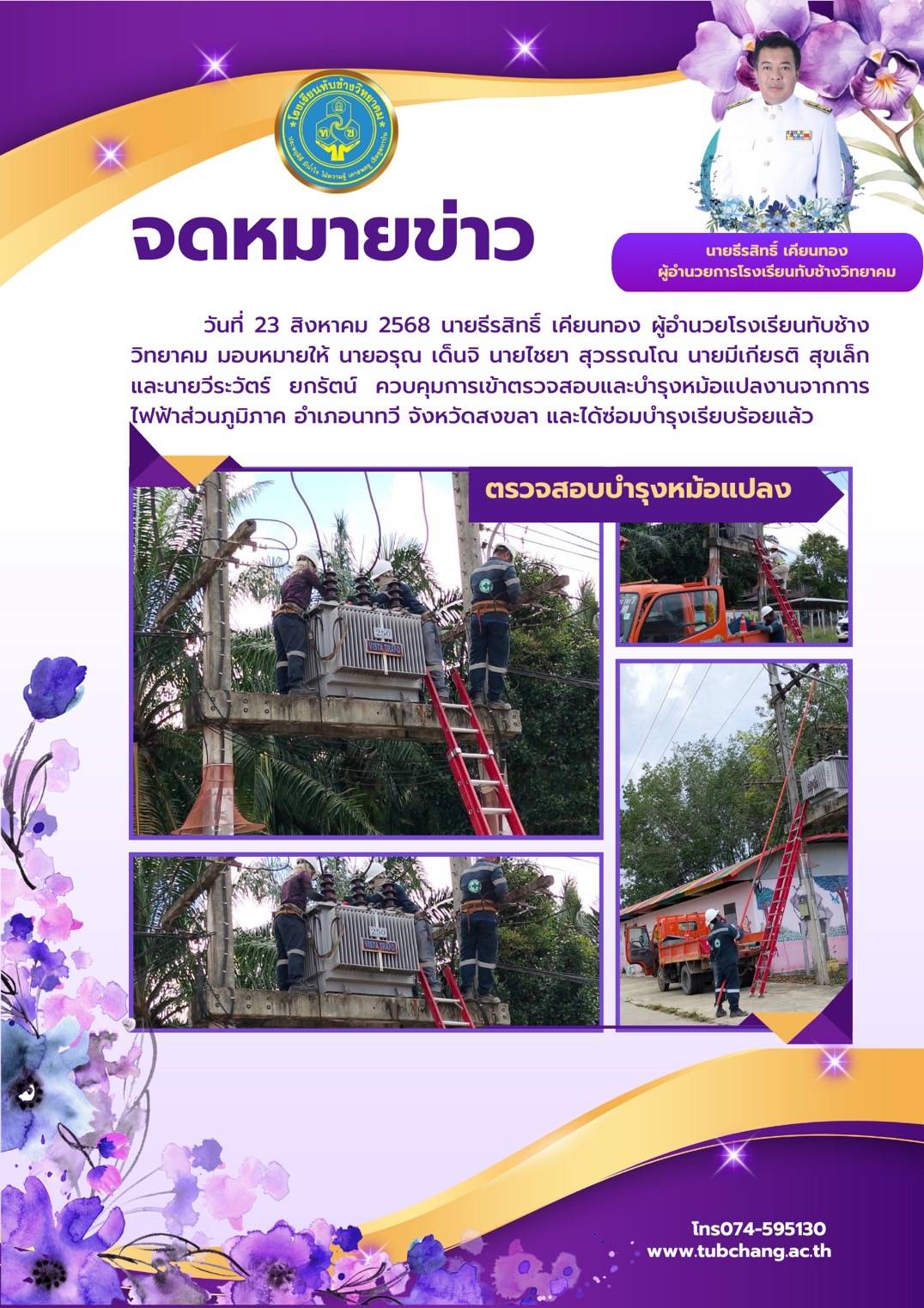 กิจกรรมตรวจสอบหม้อแปลงไฟโรวเรียนทับช้างวิทยาคม