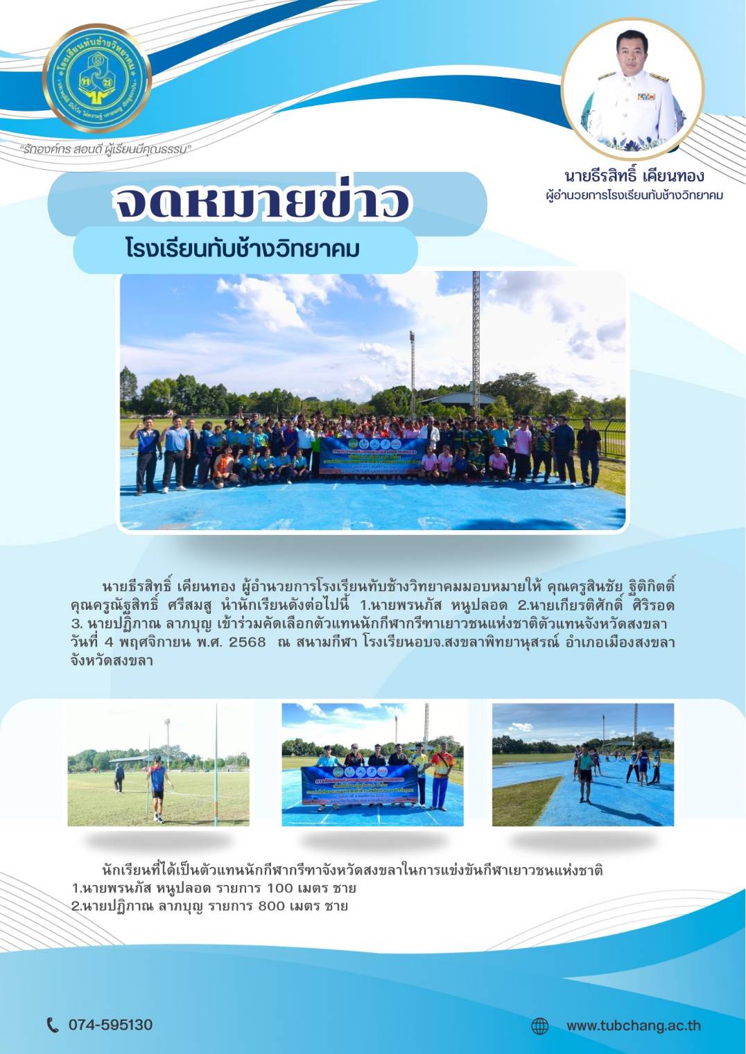 กิจกรรมคัดเลือกตัวแทนนักกีฬากรีฑาเยาวชนแห่งชาติตัวแทนจังหวัดสงขลา