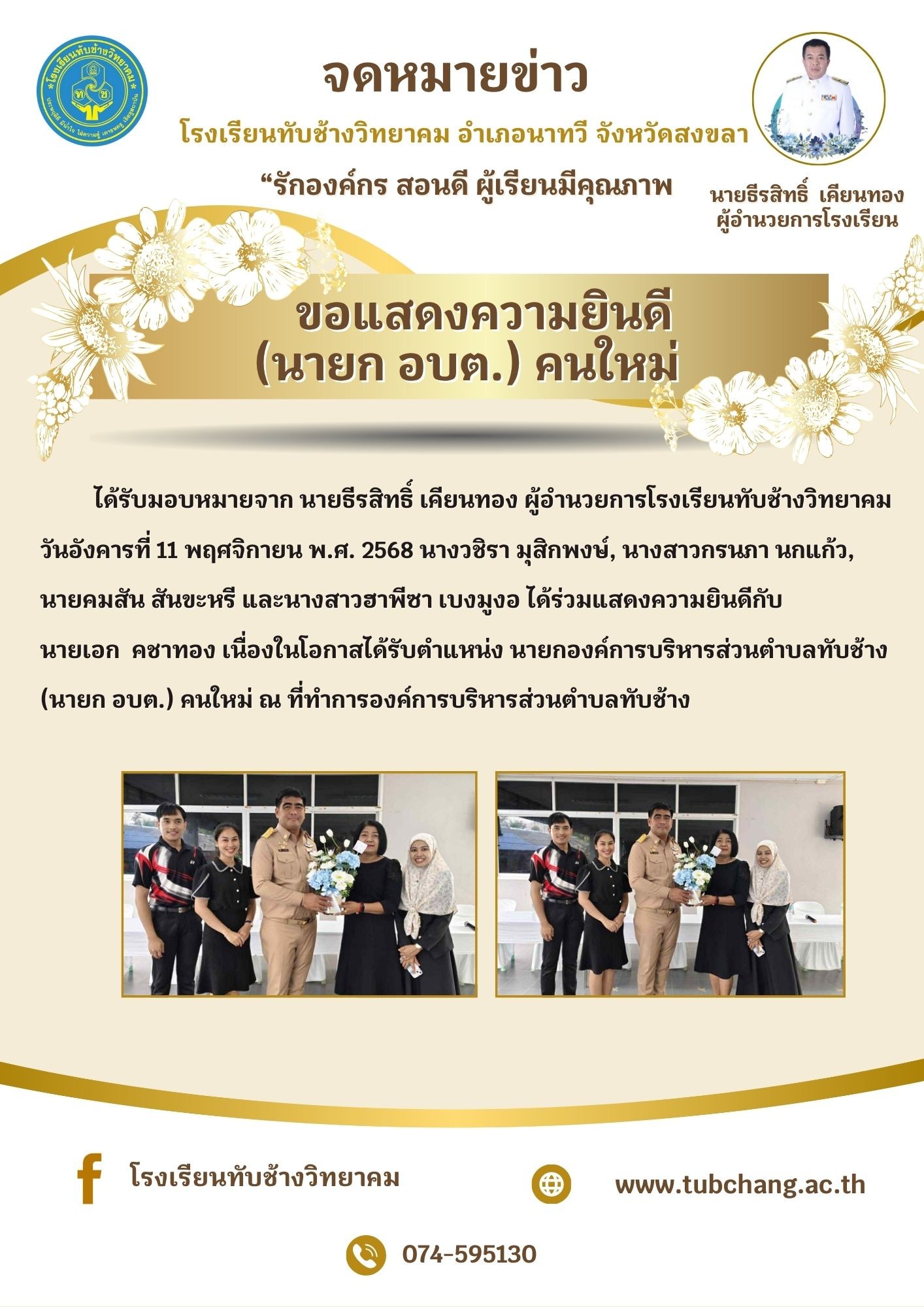 ร่วมแสดงความยินดี นายเอก คชาทอง เนื่องในโอกาสได้รับตำแหน่ง นายกองค์การบริหารส่วนตำบลทับช้าง